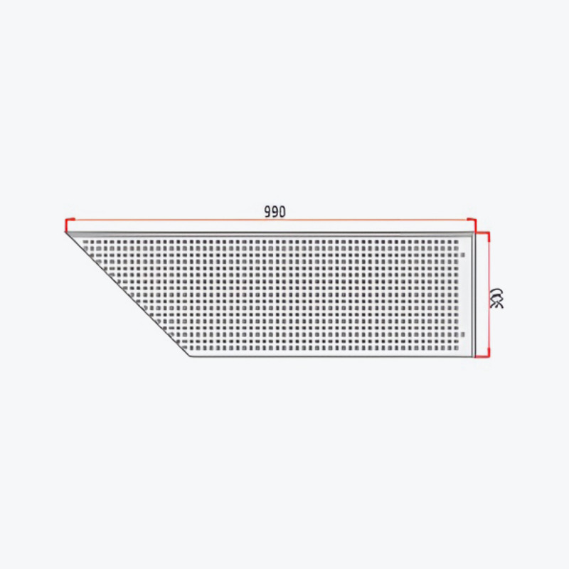 1.Product name: aluminum shelf 2.Model: ED013 3.Material: aluminum 4.Discription: 990x300mm, with some small holes, be used in the corner